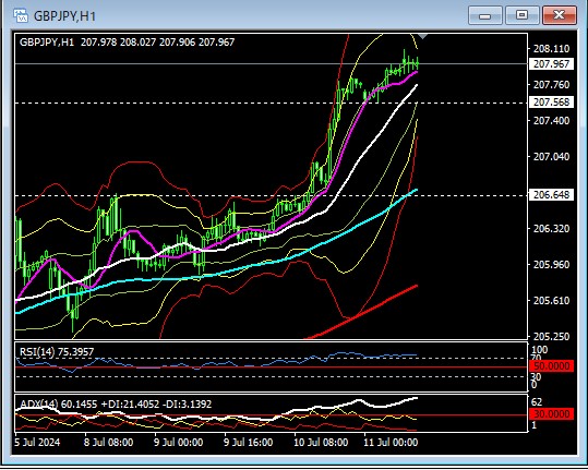これが「2024年07月11日 18:31」時点の「1時間足」チャートです。