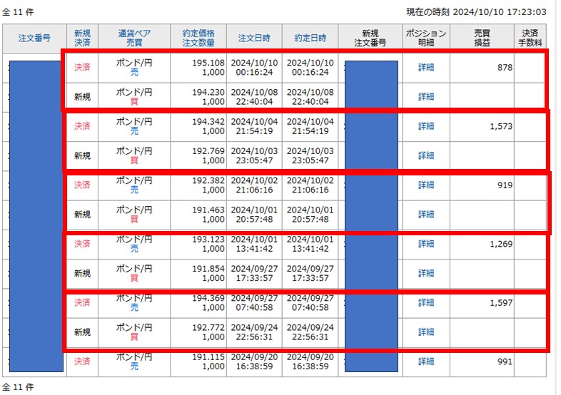 下の表が「2024年9月24日~10月10日までの成果です」。