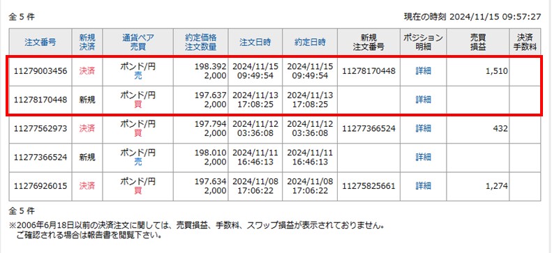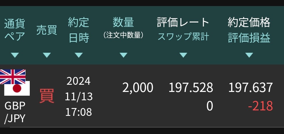 2024年11月13日に「買い」でトレードしました。