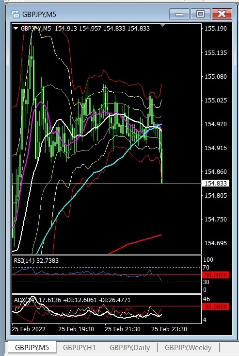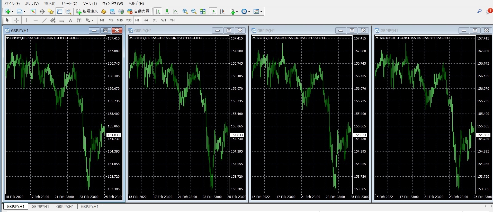 左から「5分足」「1時間足」「日足」「週足」のチャ-トになります。
