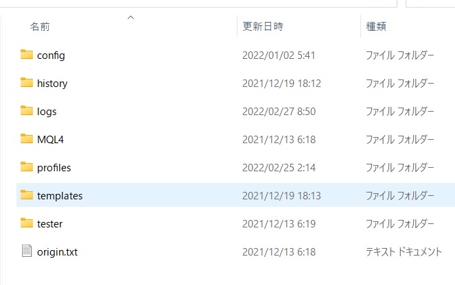 指定ホルダ- は「MT4」を起動し「ファイル」->「データホルダ-を開く」で開いた画面の「templates」ホルダ-の中に貼り付けます。