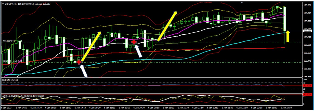 それを確かめる為に「GBPJPY」の「5分足」のチャートを拡大して見ます。