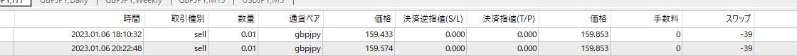 他の3通貨は「価格」がほぼ下降していますが、「GBPJPY」だけが上昇(少し下降していますが)しています。